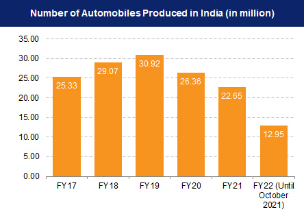 The Indian passenger car market was valued at US$ 32.70 billion in 2021, and it is expected to reach a value of US$ 54.84 billion by 2027 while registering a CAGR of over 9% between 2022-27. The global EV market was estimated at approximately US$ 250 billion in 2021 and by 2028, it is projected to grow by 5 times to US$ 1,318 billion.